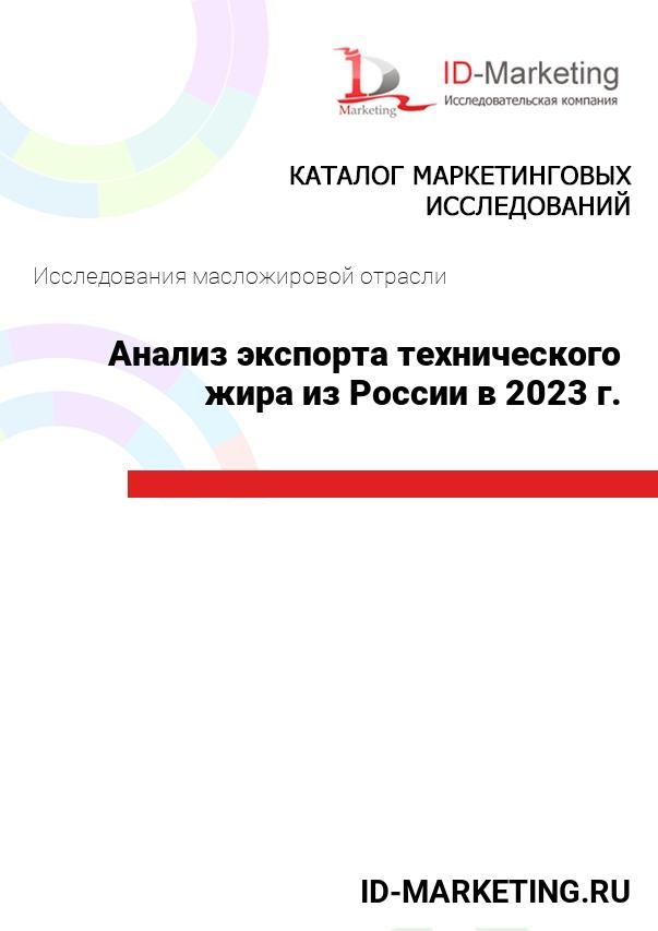 Отчет посвящен анализу экспорта технического жира из России в 2023 году. Представлены рейтинги стран покупателей и иностранных компаний покупателей технического жира, российских компаний поставщиков и производителей.